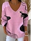 Naisten Neulos Pusero Vintage Vapaa-aika Kuvitettu Joustin V kaula-aukko Ylisuuret Kudottu Painettu Pitkähihainen Tavalliset topit Neuloa ulko- Päivittäin Apila Kevät Syksy