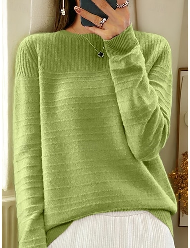 Naisten Neulos Vapaa-aika Pehmeä Väripalikka Joustin Tiukka pyöreä kaula-aukko Kudottu Pitkähihainen Tavalliset topit Neuloa ulko- Päivittäin Viikonloppu Rubiini Apila Syksy Talvi