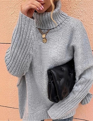 Naisten Neulos Pusero Tyylikäs Vapaa-aika Pehmeä Puhdas väri Joustin Tiukka pyöreä kaula-aukko Poolokaulus Kudottu Pitkähihainen Tavalliset topit Neuloa ulko- Päivittäin Viikonloppu Vaaleanharmaa