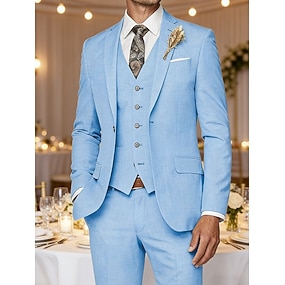 Miesten Bleiseri + liivi + housut Blazer-takki Puvut liiketoiminta Työ Juhla Tyylikäs Muoti Kevät Syksy Pellava Yhtenäinen väri 3-osainen Yksirivinen Bleiseri Sininen Tumman harmaa Vaalean vihre