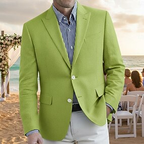 Miesten Pellava bleiseri Bleiseri liiketoiminta Cocktailjuhla Hääjuhla Muoti Vapaa-aika Kevät Syksy Puuvilla ja pellava Tavallinen Tasku Napit Mukava Yksirivinen Bleiseri Tumman ruskea Vaalean vihre