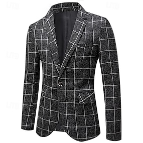 Miesten Bleiseri liiketoiminta Cocktailjuhla Hääjuhla Muoti Vapaa-aika 봄 & Syksy Polyesteri Skottiruutukuvio Tasku Napit Mukava Yksirivinen Bleiseri Musta Valkoinen Laivaston sininen Harmaa