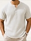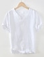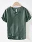 Miesten Pellava paita T-paita Lyhythihainen Lyhyt hiha V kaula-aukko Kesä Tavallinen Loma Vintage Muoti Rypytetty Soft Perus Kausaliteetti Loma Katu Valkoinen Tumman harmaa Apila Top T-paita miehille