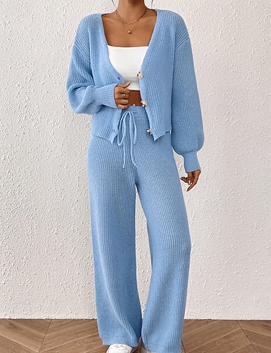 Naisten Neulos Pusero setti Katutyyli Vapaa-aika Raidoitettu V kaula-aukko Kudottu Pitkähihainen Tavalliset topit Neuloa ulko- Päivittäin Pyhäpäivä Khaki Syksy Talvi