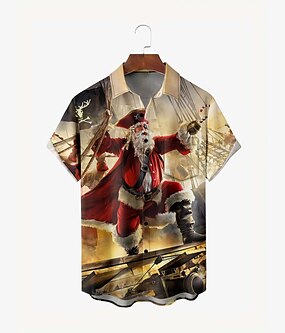 joulu miesten joulupukki havaijilainen paita merirosvo muoti vapaa-ajan ulkoiluvaatteet arkivaatteet katuvaatteet syksyn yökuntoon laitto lyhythihainen khaki s m l normaali