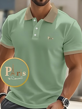 Miesten Teksti Eiffel-torni Polo Lyhythihainen Poolopaidat Kauluspaidat Business Casual Koulu Urheilu- ja treenivaatteet Arki-asut 3D-tulostus Kesä Musta Punastuvan vaaleanpunainen Laivaston sininen