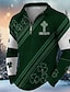 Pyhän Patrickin miesten shamrock-polo pitkähiha käännettävä moderni vapaa-ajan urheiluvaatteet rento päivittäinen festivaali vetoketju 3D-printti kevät syksy tumma vihreä vihreä