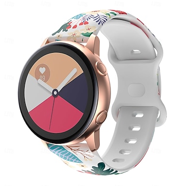 Kellon ranneke varten Samsung Galaxy Watch 8/7/6/5/4 40/44mm, Watch 6 Classic 43mm, Watch 4 Classic 42mm Silikoni Korvaus Hihna Säädettävä Urheiluhihna Kukkapainatus Ranneke