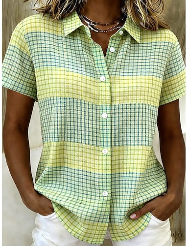 Miesten Vohveli poolopaidat Poolopaidat Kausaliteetti Katu Kauluskäänne Lyhythihainen Perus Moderni Raidoitettu Kevyt Napit Kesä Kevät Normaali Valkoinen Kuninkaallinen sininen Apila Khaki Vaalean