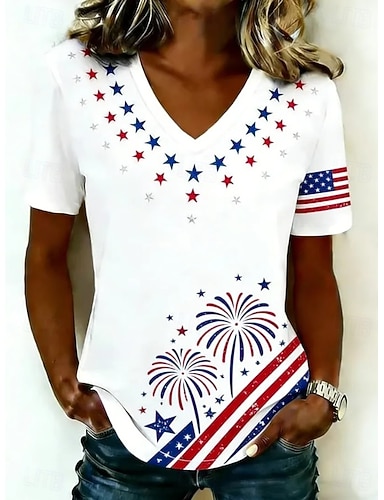 Amerikan itsenäisyyspäivä Naisten T-paita Painettu Kuvitettu Amerikan lippu Vintage Tyylikäs Klassinen Lyhythihainen V kaula-aukko Tavalliset topit Päivittäin Musta Valkoinen Laivaston sininen