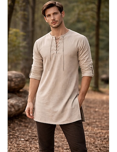 Keskiaika Renessanssi Pusero Tunika Pitkähihainen Merirosvo Viikinki Naamiaispuku Miesten Viikinki Merirosvo Halloween Karnevaali Suoritus LARP Ren Faire Aikuisten Pusero