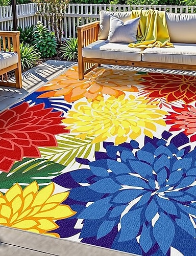 Ulkomatto 5x8 jalkaa vedenpitävä monivärinen sisämatto pestävä ulkoterassimatto trooppinen kukkakuvioinen liukumaton ulkomatto olohuoneeseen, uima-altaalle, takapihalle, terassille ja retkeilyyn.