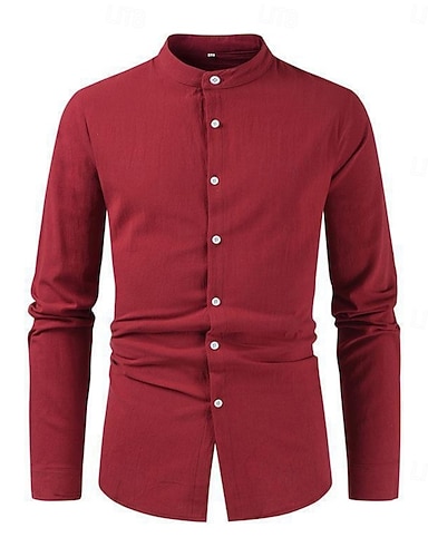 Miesten Paita Pellava paita Rantapaita Button Up paita Tavallinen Kausaliteetti Loma Musta Valkoinen Vaalean vihreä Punastuvan vaaleanpunainen Pitkähihainen Pystykaulus Kesä Kevät Vaatetus Tasku