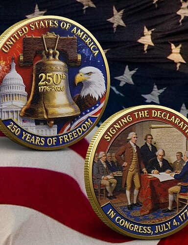 Yhdysvaltain 250-vuotisjuhlavuoden muistoraha, itsenäisyysjulistuksen kuva-aihe, vapaus &kotka &isänmaallinen lippu, keräilyesine metalliraha esillepanoon, 1776–2026 puoliviisivuotisjuhla,