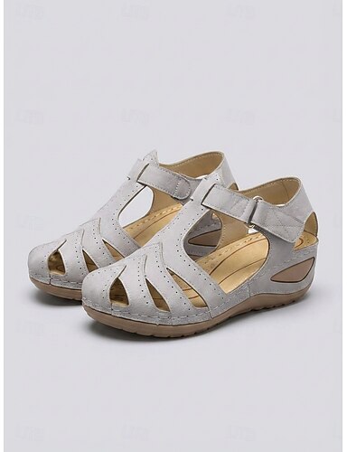 Naisten oranssit suljetun kärjen sandaalit tarranauhalla – kevyet pehmustetut roomalaiset sandaalit matkoille, ulkoiluun ja puutarhakävelyille &päivittäinen käyttö