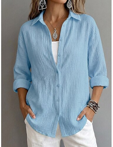 Naisten Paita Pusero Napit Tavallinen Tyylikäs Moderni Pitkähihainen Paitapuserokaula-aukko Tavalliset topit Päivittäin Pyhäpäivä Bile Musta Valkoinen Vaalean vihreä Punastuvan vaaleanpunainen Apila