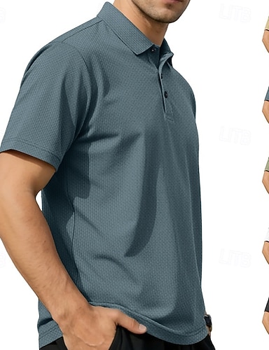Miesten Vohveli poolopaidat Textured Kausaliteetti Työ Kauluskäänne Lyhythihainen Perus Moderni Kuvitettu Pintakäsitelty Jäähdytys Jääsilkki Kevät kesä Musta Valkoinen Laivaston sininen Vaalean