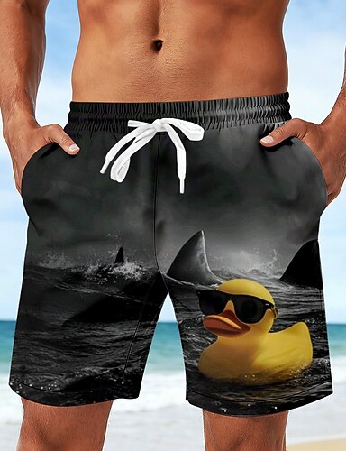 Miesten Eläin Hai Ankka Uimahousut Uimapuvut Uimahousut Surffishortsit Keskivyötärö Hauska Rantaloma Sivutaskut Verkkovuori Joustava kiristysnyöri vyötäröllä Suunnittelija Vaatetus