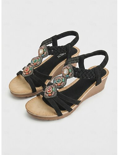 Naisten kamelinväriset strassikiviset mukavuuskorkosandaalit säädettävillä hihnoilla – pehmustetut paksut holvituet sandaalit matkoille, jokapäiväiseen käyttöön, puutarhaan &rentoja asuja