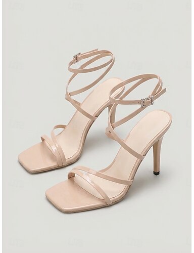naisten ihonväriset remmillä varustetut korkokengät – minimalistiset neliökärkiset stilettokorkokengät yökerhoihin ja juhliin &elegantti ilta ulkona