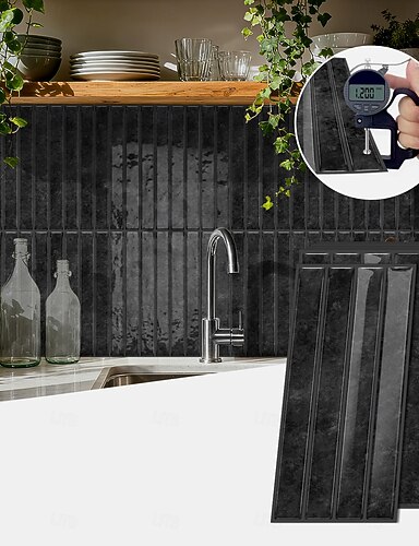 20 kpl 3D-seinätarraa, laattajäljitelmää, 24,6 * 12 cm, tummanharmaa koristeellinen raitakuvio, irrotettava seinätarra, käytetään keittiön takalokasuojaan, makuuhuoneen olohuoneen sisustukseen ja