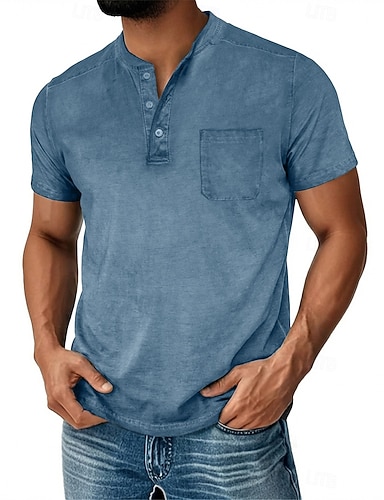 Miesten Vintage Pesty Puuvillainen paita Henley toppi Happopesupaita Lyhythihainen Aktiivinen Vintage Suunnittelija Kausaliteetti Päivittäin ulko- Kevät kesä Kesä Kevät Vaalean sininen Purppura Harmaa