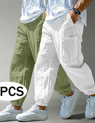 Miesten Pellavahousut Housut Kesähousut Roikkuvat housut Monitasku Joustava resori Tavallinen Kevyt Hengittävä Täyspitkä Kausaliteetti Päivittäin Pyhäpäivä Loma Muoti Valkoinen + Vihreä Valkoinen