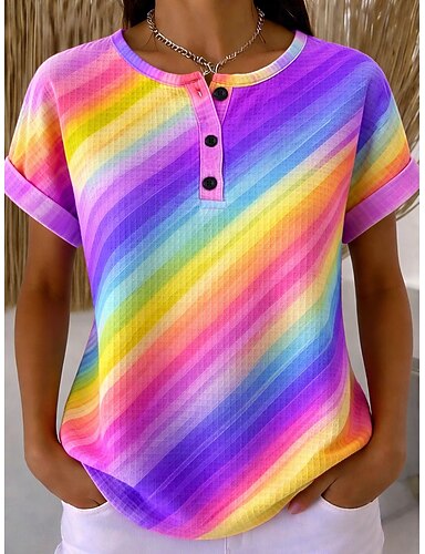 Naisten Tekstuurit neuletoppit T-paita Väripaletti Ombre Kuvitettu Geometria Tyylikäs Klassinen Lyhythihainen Tiukka pyöreä kaula-aukko Pyöreä kaula-aukko Henley Pitkät topit Päivittäin Urheilu