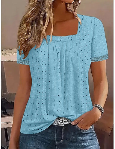Naisten T-paita Nauhanreikä Tavallinen Muoti Tyylikäs Klassinen Lyhythihainen Nelikulmainen kaula-aukko Tavalliset topit Pitkät topit Päivittäin Bile Viikonloppu Sininen Purppura Kesä Kevät