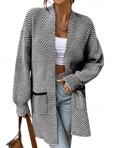 Naisten neulecardigan ribbattu nappikiinnitys v-kaula-aukko pitkät hihat kevyt muoti katumuoti rento graafinen geometrinen ruudullinen nappi printti neulottu ulkoilu päivittäinen viikonloppu musta