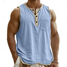 Miesten Henley-paita Liivin toppi Pellava Tankkitoppi Hihaton Henley Kesä Tavallinen Muoti Suunnittelija Boheemi Napit Raw Edge Kausaliteetti Loma Bile Valkoinen Punastuvan vaaleanpunainen Laivaston