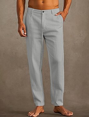 Miesten Pellavahousut Housut Kesähousut Rantahousut Laskostettu Joustava vyötärö Suora jalka Tavallinen Mukavuus Hengittävä Täyspitkä liiketoiminta Päivittäin Pyhäpäivä Muoti Klassinen tyyli