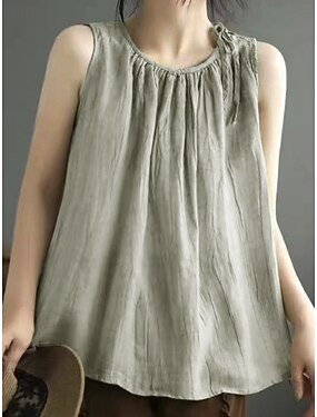 Naisten Camisole Tank Top Keinopuuvillainen pellava Rypytetty Tavallinen Tyylikäs Vapaa-aika Hihaton Riipuskaula Tavalliset topit Päivittäin Punastuvan vaaleanpunainen Laivaston sininen Apila