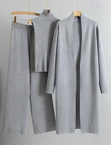 Naisten Neulos Neule Päivittäin Vapaa-aika Yhtenäinen väri Avoin etuosa Kudottu Pitkähihainen Pitkät topit Neuloa Koti Työ Khaki Vaaleanharmaa Syksy Talvi