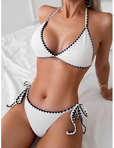 Naisten bikinit 2-osainen uimapuku kaarituetut solmittavat sivut ohuet selästä avonaiset lomaranta-asut tasaväriset halter-kaula-aukoilla ilman hihoja