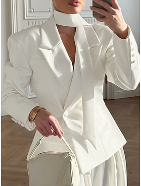 Naisten Bleiseri Mukava Napit Muoti Tavallinen Loma Pyhäpäivä Yksirivinen Normaali Sänkyjen avaus Normaali Pitkähihainen Päällysvaatteet Valkoinen Kuninkaallinen sininen Fuksia Syksy Talvi