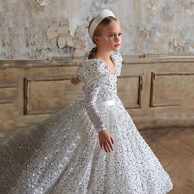 Kukkaistytön asu Lapset Tyttöjen Prinsessa mekko Suoritus Häät Juhla Tyylikäs Kaunis Paljetti Silmukka Yhtenäinen väri Hihaton Tiukka pyöreä kaula-aukko Valkoinen Samppanja 4 vuotta +