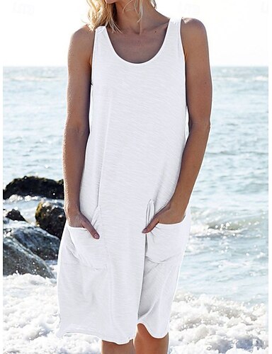 Naisten pellavajäljitelmämekko polvipituinen kesämekko arkimekko vapaa-ajan mekko alusmekko muoti perus moderni päivittäin loma bile väljä istuvuus yksivärinen hihaton pyöreä kaula-aukko sininen musta