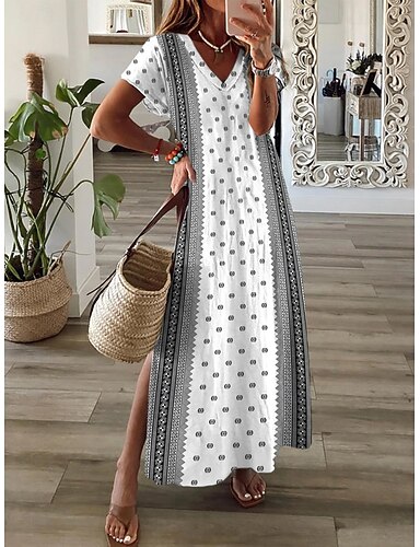 Naisten Maksimekko A linjainen mekko Kukka mekko Tyylikäs Vapaa-aika Loma Kausaliteetti Päivittäin Normaali Kukka Lyhythihainen V kaula-aukko Valkoinen Kesä Kevät