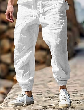 Miesten Pellavahousut Housut Kesähousut Kurenauha Tasku Tavallinen Mukavuus Pehmeä Nilkkapituinen Kausaliteetti Päivittäin Bile Yksinkertainen Vapaa-aika Musta Valkoinen Mikrojoustava