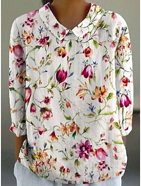 Naisten Paita Keinopuuvillainen pellava Pitkähihainen Paitapuserokaula-aukko Sininen Valkoinen Apila Kevät Syksy
