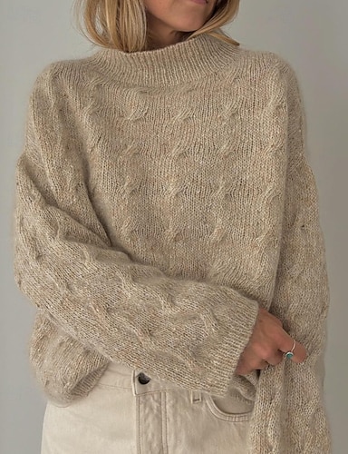Naisten Neulos Pusero Katutyyli Vapaa-aika Yhtenäinen väri Poolokaulus Kudottu Pitkähihainen Tavalliset topit Neuloa Päivittäin Pyhäpäivä Viikonloppu Khaki Syksy Talvi