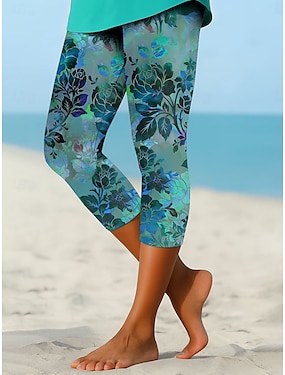 Naisten legginsit capri-housut korkea jousto lomat vintage-muoti säärimitta keskikorkeus kukkakuviot graafinen painatus hengittävä pehmeä loma arkikäyttö Robin's Egg Blue musta tummansininen
