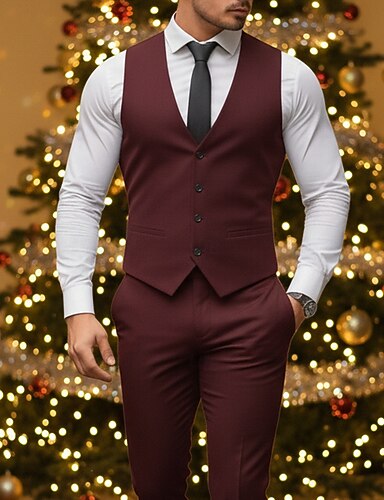 miesten rento liivi v-kaulus musta viininpunainen muodollinen yksivärinen räätälöity istuvuus