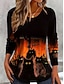 Naisten t-paita kurpitsa graafinen kissa vintage tyylikäs klassinen pitkät hihat pyöreä kaula-aukko säännölliset yläosat päivittäin printti oranssi kevät syksy talvi