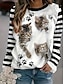 Naisten T-paita pyöreä kaula-auko pitkät hihat tunika graafinen eläin kissa vintage tyylikäs klassinen pyöreä kaula säännölliset paidat päivittäinen viikonloppu printti mustavalkoinen musta valkoinen