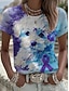 Naisten T-paita Kuvitettu Eläin Kissa Vintage Tyylikäs Klassinen Lyhythihainen Tiukka pyöreä kaula-aukko Tavalliset topit Päivittäin Viikonloppu Painettu Sininen Purppura Apila Kesä Kevät