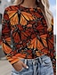Naisten T-paita Pitkähihainen Pyöreä kaula pitkä tunika Graafinen Perhonen Kasvit Vintage Tyylikäs Klassinen Normaalit paidat Päivittäinen Viikonloppu Printti Musta Punainen Violetti Ruskea Vihreä