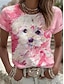 Naisten T-paita Ombre Kuvitettu Eläin Vintage Tyylikäs Klassinen Lyhythihainen Tiukka pyöreä kaula-aukko Pyöreä kaula-aukko Tavalliset topit Päivittäin Viikonloppu Painettu Punastuvan vaaleanpunainen