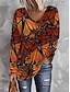 Naisten T-paita Kuvitettu Perhonen Vintage Tyylikäs Vapaa-aika Pitkähihainen V kaula-aukko Tavalliset topit Päivittäin Painettu Oranssi Kevät Syksy